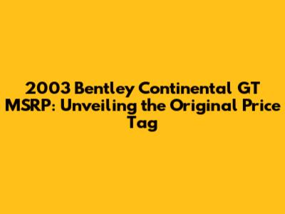 Hey guys! Ever wondered what the 2003 Bentley Continental GT originally cost? Let's dive into the world of luxury cars and explore the MSRP (Manufacturer's Suggested Retail Price) of this iconic vehicle. This article will give you a detailed overview of the price, features, and legacy of the 2003 Bentley Continental GT, offering insights into why it remains a coveted classic.