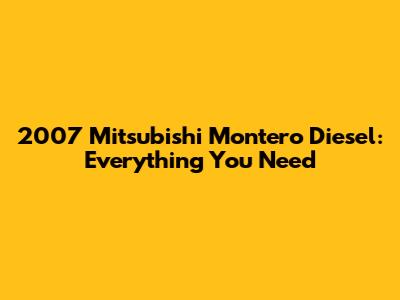 2007 Mitsubishi Montero Diesel: Everything You Need