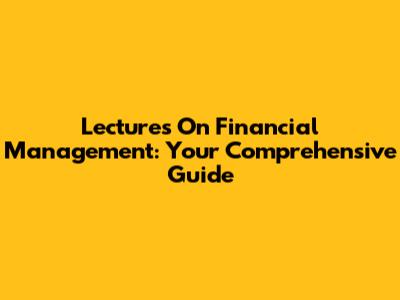 Lectures On Financial Management: Your Comprehensive Guide