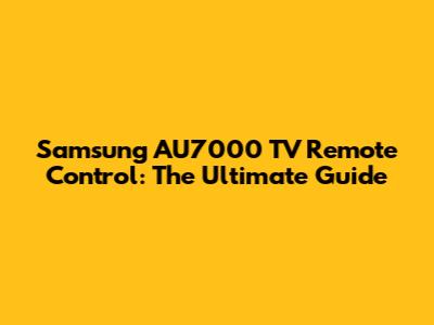 Samsung AU7000 TV Remote Control: The Ultimate Guide