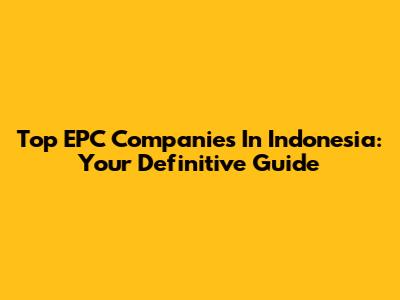 Top EPC Companies In Indonesia: Your Definitive Guide