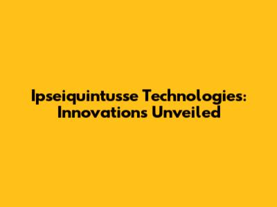 Ipseiquintusse Technologies: Innovations Unveiled