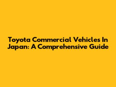 Toyota Commercial Vehicles In Japan: A Comprehensive Guide