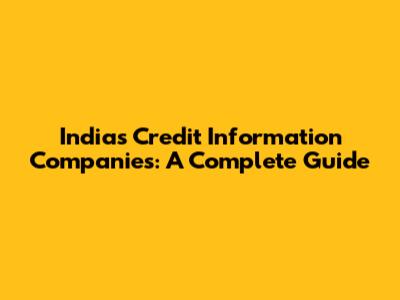 India's Credit Information Companies: A Complete Guide