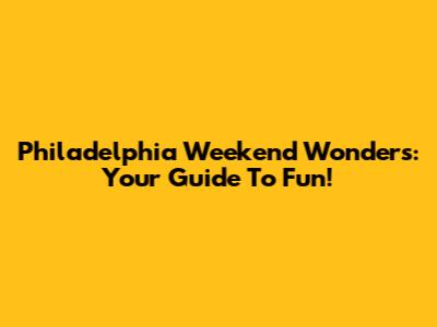 Philadelphia Weekend Wonders: Your Guide To Fun!