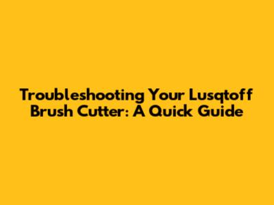 Troubleshooting Your Lusqtoff Brush Cutter: A Quick Guide