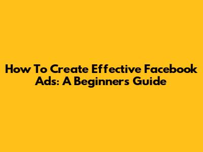 How To Create Effective Facebook Ads: A Beginner's Guide