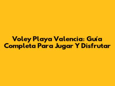 Voley Playa Valencia: Guía Completa Para Jugar Y Disfrutar