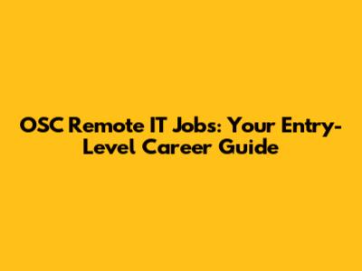 OSC Remote IT Jobs: Your Entry-Level Career Guide