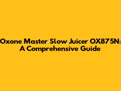 Oxone Master Slow Juicer OX875N: A Comprehensive Guide