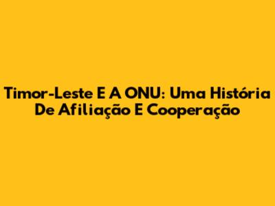Timor-Leste E A ONU: Uma História De Afiliação E Cooperação