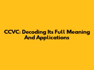 CCVC: Decoding Its Full Meaning And Applications