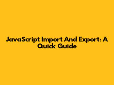 JavaScript Import And Export: A Quick Guide