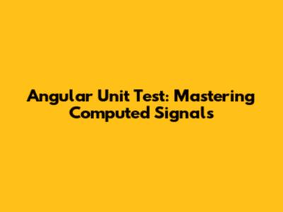 Angular Unit Test: Mastering Computed Signals
