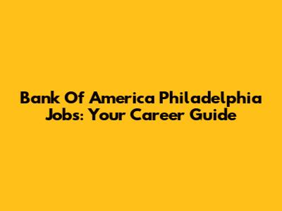 Bank Of America Philadelphia Jobs: Your Career Guide