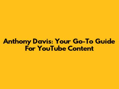 Anthony Davis: Your Go-To Guide For YouTube Content