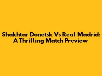 Shakhtar Donetsk Vs Real Madrid: A Thrilling Match Preview