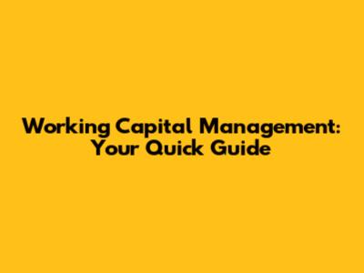 Working Capital Management: Your Quick Guide