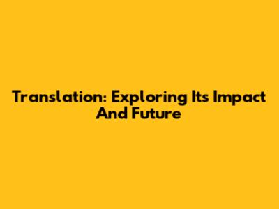 Translation: Exploring Its Impact And Future