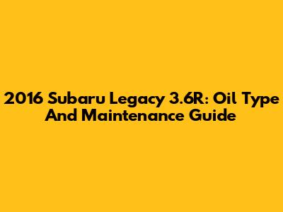 2016 Subaru Legacy 3.6R: Oil Type And Maintenance Guide