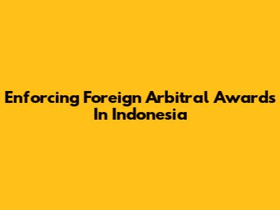 Enforcing Foreign Arbitral Awards In Indonesia