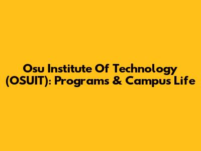 Osu Institute Of Technology (OSUIT): Programs & Campus Life