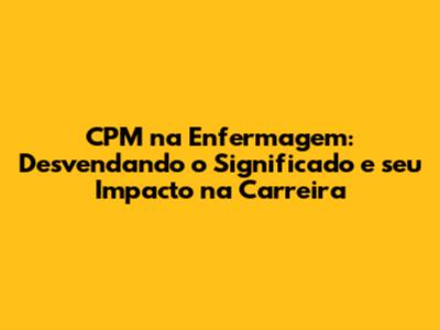 CPM na enfermagem: Se você é da área da saúde, especialmente enfermeiro(a) ou estudante de enfermagem, já deve ter se deparado com a sigla CPM. Mas, afinal, o que significa CPM na enfermagem? E qual a sua relevância para a sua carreira? Neste artigo, vamos mergulhar fundo no significado de CPM, explorar sua aplicação no contexto da enfermagem e entender como essa ferramenta pode influenciar positivamente sua trajetória profissional. Então, prepare-se para desvendar os mistérios por trás do CPM e descobrir como ele pode ser um divisor de águas em sua carreira!