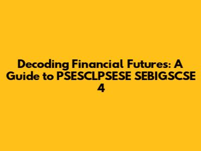 Hey everyone, let's dive into the world of PSESCLPSESE SEBIGSCSE 4 finance! It might sound like a mouthful, but trust me, understanding this stuff is super important for anyone looking to navigate the financial landscape. Think of it as learning a secret language that unlocks how money moves, how markets work, and how you can potentially make smart decisions with your own finances. We're going to break down what PSESCLPSESE SEBIGSCSE 4 actually is, why it matters, and how you can start using this knowledge to your advantage. No stuffy jargon, just a clear and friendly guide to get you started. So, buckle up, grab your favorite beverage, and let's unravel this together. We'll start with the basics, then gradually explore the key concepts, and finally, we'll talk about practical applications. By the end, you'll have a solid foundation and be able to confidently discuss this financial topic with friends, family, or even colleagues. Let's make finance fun and accessible, shall we? This journey is about empowering you with the knowledge to make informed decisions and take control of your financial destiny. This includes understanding the dynamics of global economics, market trends, and investment strategies. It is also important to consider the potential risks and rewards associated with different financial instruments, such as stocks, bonds, and derivatives. With the right knowledge and tools, you can navigate the complex world of finance with confidence and achieve your financial goals. Remember, learning is a continuous process, so stay curious, keep exploring, and never stop seeking new opportunities to expand your financial knowledge. Ready? Let's go!