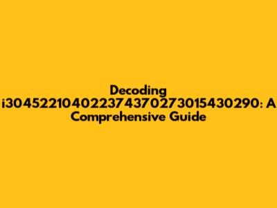 Alright, guys, ever stumbled upon a mysterious string of characters like i304522104022374370273015430290 and wondered what in the world it could mean? Well, you're not alone! Decoding these kinds of alphanumeric codes can be a real head-scratcher. But fear not! In this article, we’re going to break down what such a code might represent, how to approach decoding it, and why understanding these codes can be super useful in various fields. Let's dive in and unravel this enigma together!
