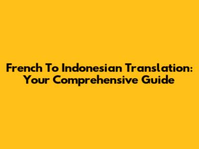 French To Indonesian Translation: Your Comprehensive Guide