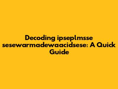 Let's dive into the world of ipseplmsse sesewarmadewaacidsese! This might seem like a jumble of letters, but stick with me, and we'll break it down. Understanding complex terms can often feel like deciphering a secret code, but with a bit of patience and the right approach, it becomes much more manageable. Think of it as solving a puzzle – each piece (or syllable) contributes to the bigger picture. Now, I know what you might be thinking: "Where do I even start?" Well, that's exactly what we're here to figure out together. We'll explore possible meanings, contexts where this term might appear, and some strategies for decoding similar lengthy or technical terms in the future. So, buckle up, and let's embark on this decoding adventure! Remember, the goal isn't just to memorize this specific term, but to develop skills that will help you tackle any complicated jargon you encounter. After all, in today's world, being able to quickly understand and adapt to new information is a superpower. And who wouldn't want a superpower, right? Whether you're a student, a professional, or simply someone who loves to learn, these skills will serve you well. Let's get started and turn that daunting string of letters into something meaningful and understandable. Trust me; it's going to be easier than you think!