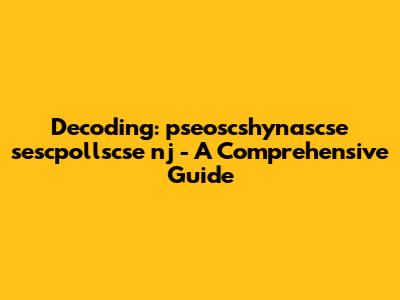 It's possible that pseoscshynascse sescpollscse nj refers to a specific technical specification or standard within a particular industry. For example, it could be a protocol for data transmission, a manufacturing process, or a coding convention. In this case, the individual components might represent different parameters, versions, or components of the specification.