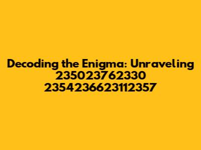 Hey everyone, let's dive into something a little mysterious! Today, we're going to break down the intriguing sequence: 235023762330 2354236623112357. Sounds cryptic, right? Well, that's the fun part! We'll be exploring what this number could possibly represent, looking at potential interpretations, and maybe even uncovering a hidden message. It’s like we're detectives, ready to decipher a secret code! This could be a reference number, a date, a code or something else entirely. Let's see if we can find out together. This particular string of numbers looks like it could be a reference to something specific, a date, a product code, or maybe even a set of coordinates. It's like a puzzle, and each digit is a piece. It is very difficult to decode this string of numbers because there is no context or information. This is why this article will focus on trying to understand what this string of numbers could represent. This is an exciting journey of discovery. So, buckle up, grab your detective hats, and let's get started. We'll be using a combination of logic, research, and a dash of creativity to try and crack this numerical mystery. Let's get right into it, and see what the numbers have to tell us.