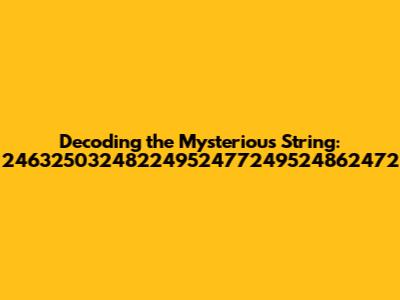 Alright, guys, let's dive headfirst into this intriguing puzzle! We're talking about the string "24632503248224952477249524862472." Now, at first glance, it might seem like a random sequence of numbers, but trust me, there's a story here. Understanding the potential meaning behind such a sequence can unlock some seriously cool insights. Let's break down why this particular string might be significant and what avenues we can explore to decode its secrets. Our main goal here is to unravel the mystery and figure out what "24632503248224952477249524862472" could represent.