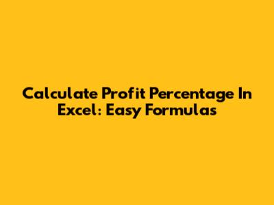 Calculate Profit Percentage In Excel: Easy Formulas