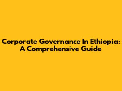 Corporate Governance In Ethiopia: A Comprehensive Guide