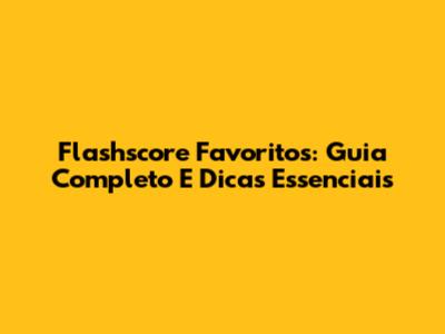 Flashscore Favoritos: Guia Completo E Dicas Essenciais