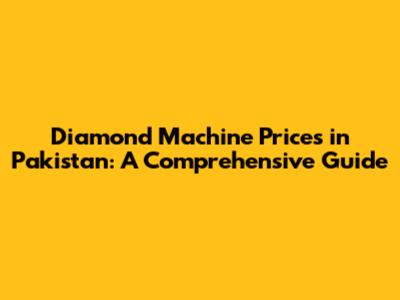 Factors Influencing Diamond Machine Prices in Pakistan