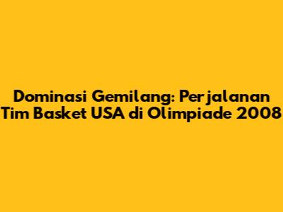 Tim basket USA Olimpiade 2008 merupakan salah satu tim yang paling diingat dalam sejarah bola basket. Dengan deretan bintang NBA yang luar biasa, mereka tidak hanya bermain untuk meraih medali emas, tetapi juga untuk mengembalikan dominasi Amerika Serikat di panggung dunia. Mari kita selami lebih dalam perjalanan mereka, mulai dari persiapan hingga kemenangan yang gemilang di Beijing.