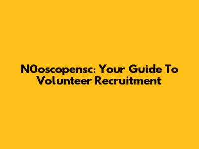 N0oscopensc: Your Guide To Volunteer Recruitment