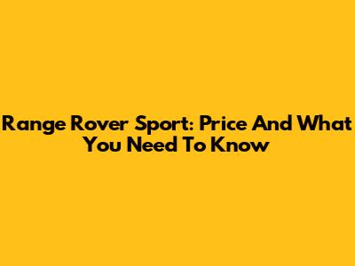 Range Rover Sport: Price And What You Need To Know