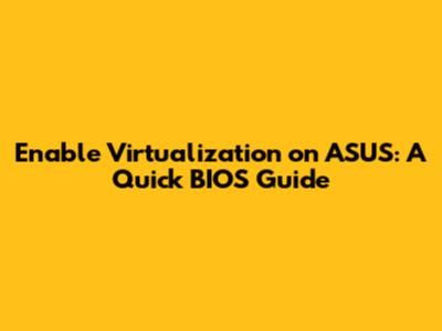 Enabling virtualization technology on your ASUS system ensures your virtual machines run efficiently, saving you time and frustration. Remember to check your CPU support and BIOS settings for a seamless experience. Happy virtualizing, folks!
