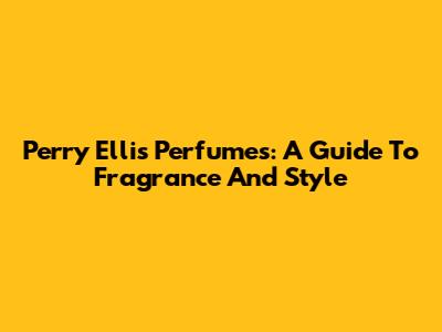 Perry Ellis Perfumes: A Guide To Fragrance And Style