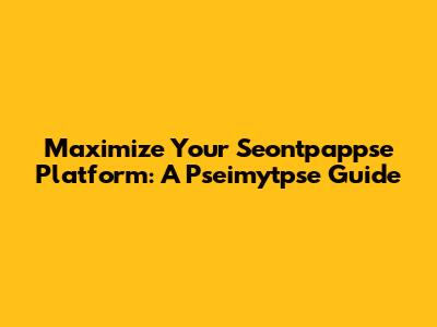 Maximize Your Seontpappse Platform: A Pseimytpse Guide