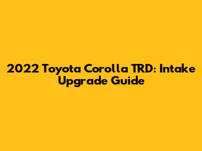 2022 Toyota Corolla TRD: Intake Upgrade Guide