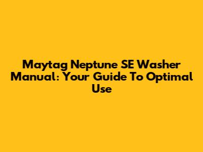 Maytag Neptune SE Washer Manual: Your Guide To Optimal Use