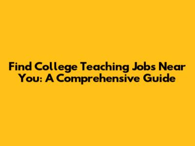 Find College Teaching Jobs Near You: A Comprehensive Guide