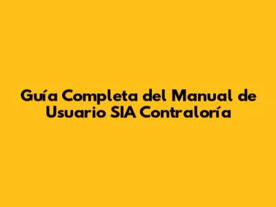 Guía Completa Del Manual De Usuario SIA Contraloría