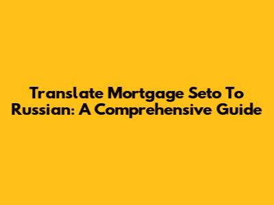 Translate Mortgage Seto To Russian: A Comprehensive Guide