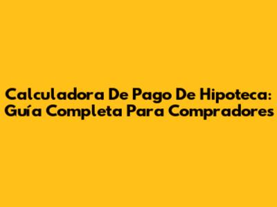 Calculadora De Pago De Hipoteca: Guía Completa Para Compradores